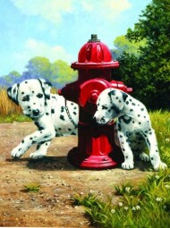 Malování podle čísel Dalmatini u červeného hydrantu 22x30cm