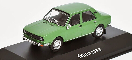 Sběratelský kovový model vozu Škoda 105 S 1978, v měřítku 1:43.