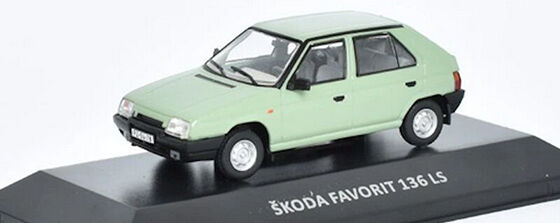 Sběratelský kovový model vozu Škoda Favorit 136 LS 1991, v měřítku 1:43.