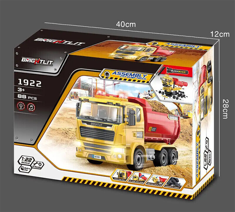 Skládací model nákladního auta s výklopnou korbou, který sestavíte za pomocí šroubováku z 88 dílků. Auto má zvukové i světelné efekty.