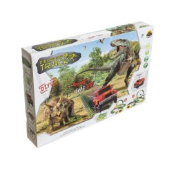 Dráha dino + auto 10x5cm plast 172ks na baterie s doplňky v krabici 48x32x7cm