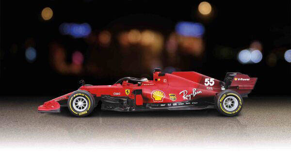 Kovový model v měřítku 1:18 Bburago 18-16811 Ferrari F1-75 je dodáván v průhledné plastikové krabičce. Barva modelu je červená, pilot #55 Carlos Sainz.