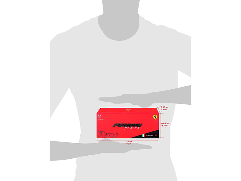 Kovový model auta Bburago Ferrari Testa Rosa v měřítku 1:43 je dodáván v papírové krabičce.