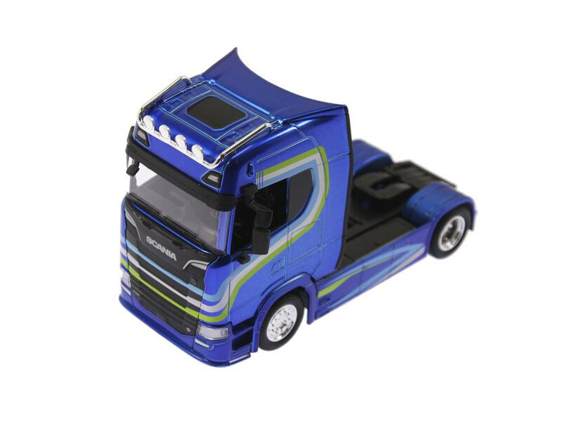 Kovový model Bburago - Scania 770S modrá 1:43 v měřítku 1:43. Je vyroben z kovových a plastových dílů v detailním zpracování.