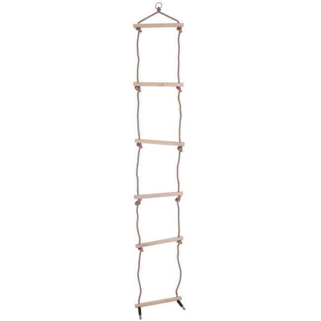 Tento odolný, tradiční provazový žebřík je ideální pro pomoc dětem rozvíjet jejich rovnováhu a lezecké dovednosti. Může být použit venku nebo uvnitř a má robustní dřevěné příčky. Skvělé pro zábavu a aktivní hraní. Vyrobeno z vysoce kvalitních, zodpovědně získaných materiálů. Splňuje aktuální evropské bezpečnostní normy. Při používání tohoto výrobku se doporučuje, aby děti všech věkových kategorií byly pod dohledem odpovědné dospělé osoby. Hmotnostní limit: 60 kg.
