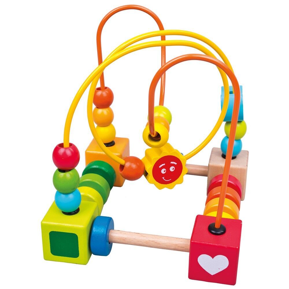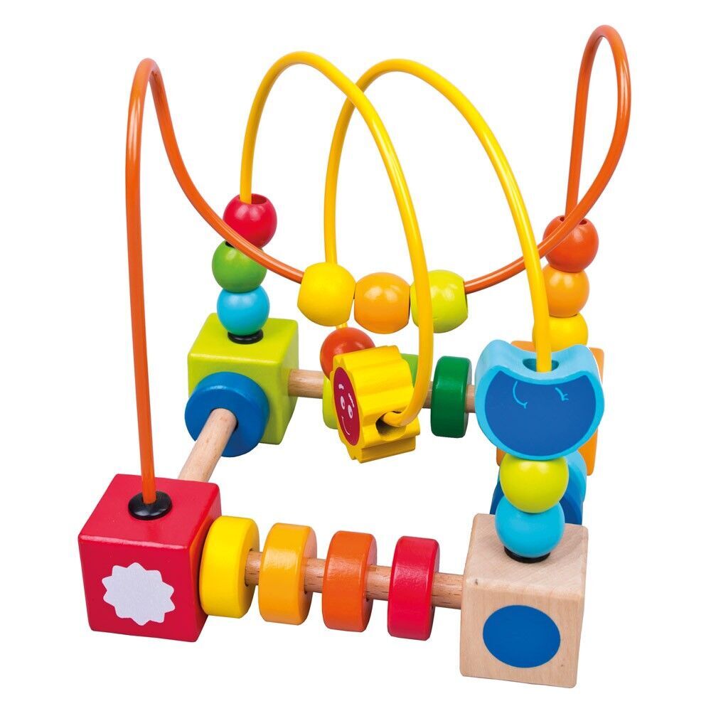 Pestrobarevný labyrint s mnoha korálky, který zabaví děti již od těch nejmenších. Děti se s jeho pomocí učí rozeznávat základní barvy a tvary. Posouvání korálků z jedné strany na druhou je dobrým pomocníkem při procvičování jemné motoriky a citu v rukou. Na podstavci labyrintu jsou umístěny další korálky sloužící jako minipočítadlo.
