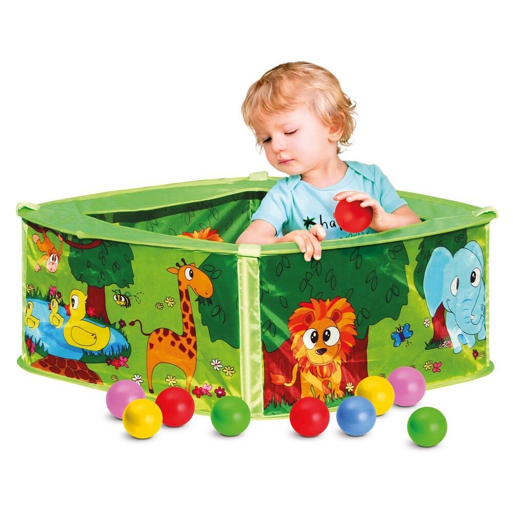 Hrací bazének s množstvím barevných míčků se hodí do každého dětského pokoje. Pro děti skvělá zábava i na několik hodin, podporující senzomotorický vývoj. Barevné dětské míčky jsou měkké, ale odolné a po zmáčknutí se vrátí do původního tvaru. Vhodné pro vnitřní i venkovní použití (za sucha). Bazének lze snadno rozložit i složit pro úsporu místa. Baleno v praktické kartonové krabici vybavené uchem k přenášení.