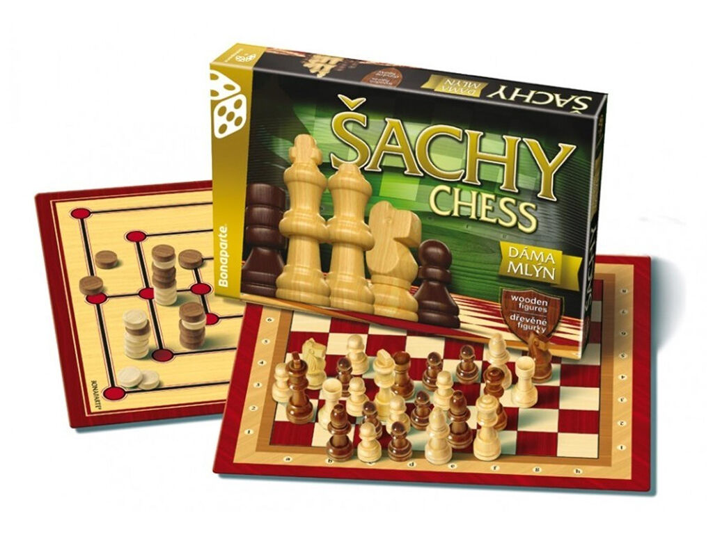 Bonaparte Šachy Dáma Mlýn dřevěné figurky a kameny společenská hra