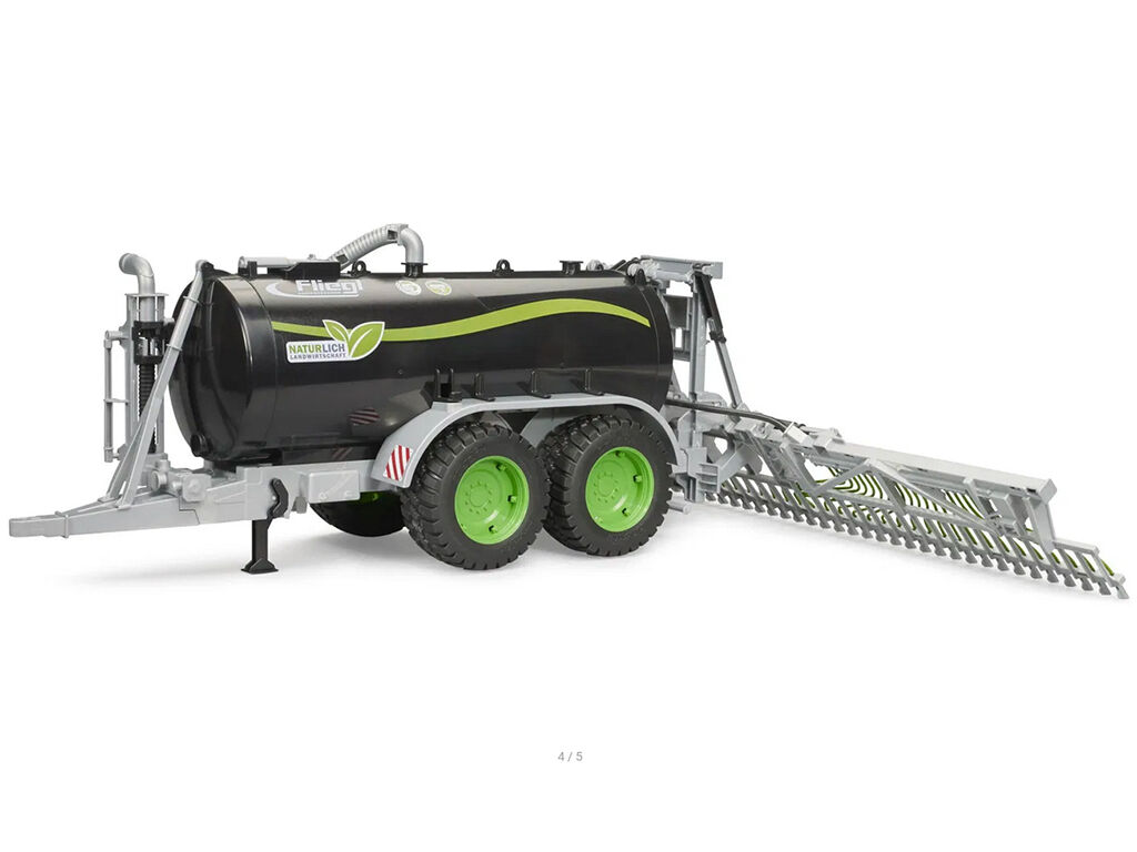 Představujeme vám revoluční novinku na trhu – Cisternu Fliegl Jumbo Line Plus od společnosti Fliegl, která představuje nejnovější přírůstek do širokého sortimentu zemědělské techniky BRUDER. Detailní design a praktické funkce, jako je naplnitelná nádrž na vodu uzavíratelná víčkem a promyšleně umístěný výpustný ventil v zadní části přívěsu, z této cisterny dělá nepostradatelného pomocníka pro každého malého farmáře, nebo farmářku. Hadice umožňují snadný přísun vody přímo tam, kde je to nejvíce potřeba, ať už na rozsáhlých polích, nebo v obtížně dostupných místech. Při jízdě po cestě jdou ramena složit a na poli znovu rozložit.