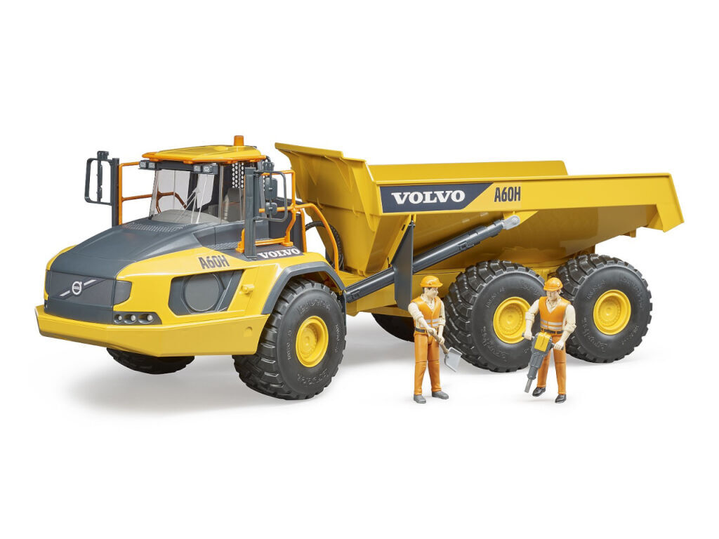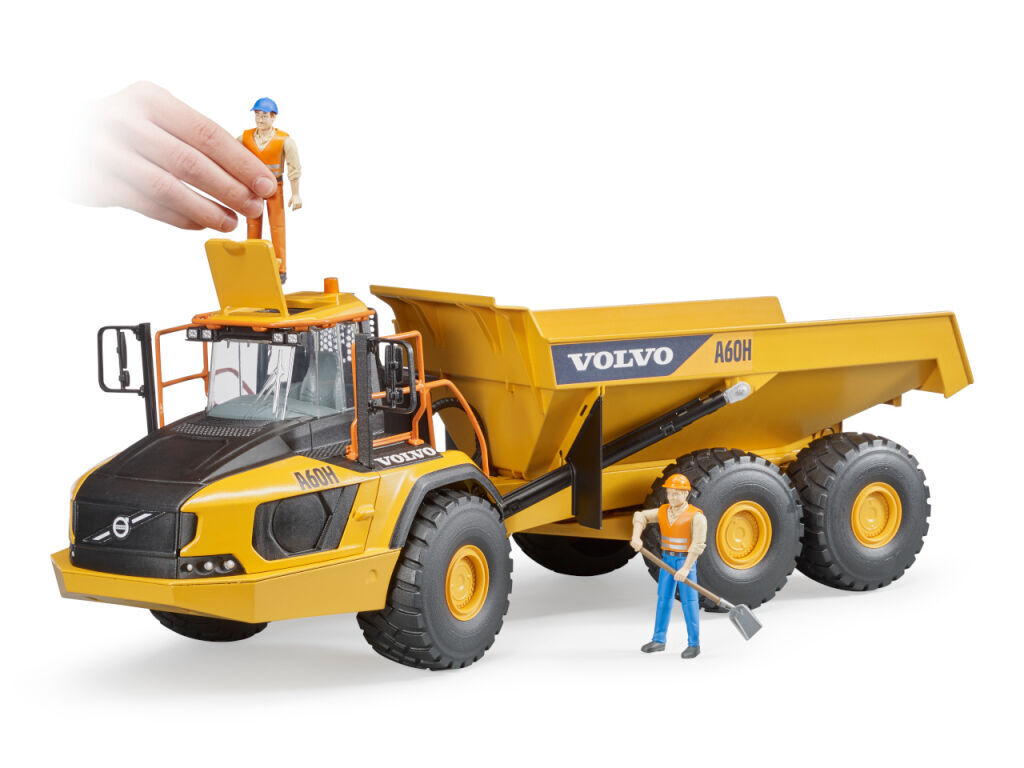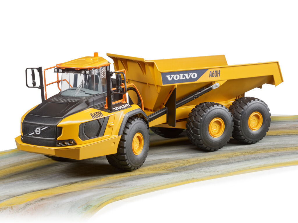 Postrádali jste v Bruder světě pořádný stroj pro práci v náročném terénu? Pak vás jistě zaujme Kloubový dampr Volvo A60H. Tento model jistě zaujme všechny milovníky značky Volvo a těžkých strojů. Kloubový dampr má sklopnou korbu a měkké profilované pneumatiky. Rozšiřte svůj Bruder svět o tento zajímavý exponát a užijte si ještě více stavební zábavy. Největší kloubový dampr společnosti Volvo A60H s kapacitou až 55 metrických tun je určen pro přepravu těžkých nákladů v náročných podmínkách, např. v lomech, povrchových dolech nebo při rozsáhlých zemních pracích. Model Bruder 2455 je vyrobený v měřítku 1:16 ke skutečnému stroji. Vyrobeno v Německu, z kvalitních materiálů.