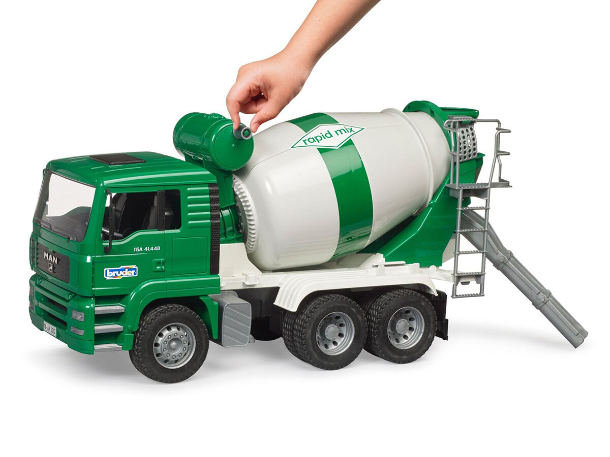 Tento domíchávač vychází jako novinka osvědčeného modelu MAN TGA. Jeho kabina se dá naklápět a umožňuje tak lepší výhled pro manipulaci. Díky otevíracím dveřím mohou do vozu nastupovat dělníci v podobě figurek Bruder. Buben míchačky je otočný a lze v něm míchat potřebný materiál. Změnou směru otáčení je možné z bubnu míchaný materiál vypustit. Šnekový dopravník na vnitřní straně bubnu dopravuje náklad do výsypného žlabu v zadní části.