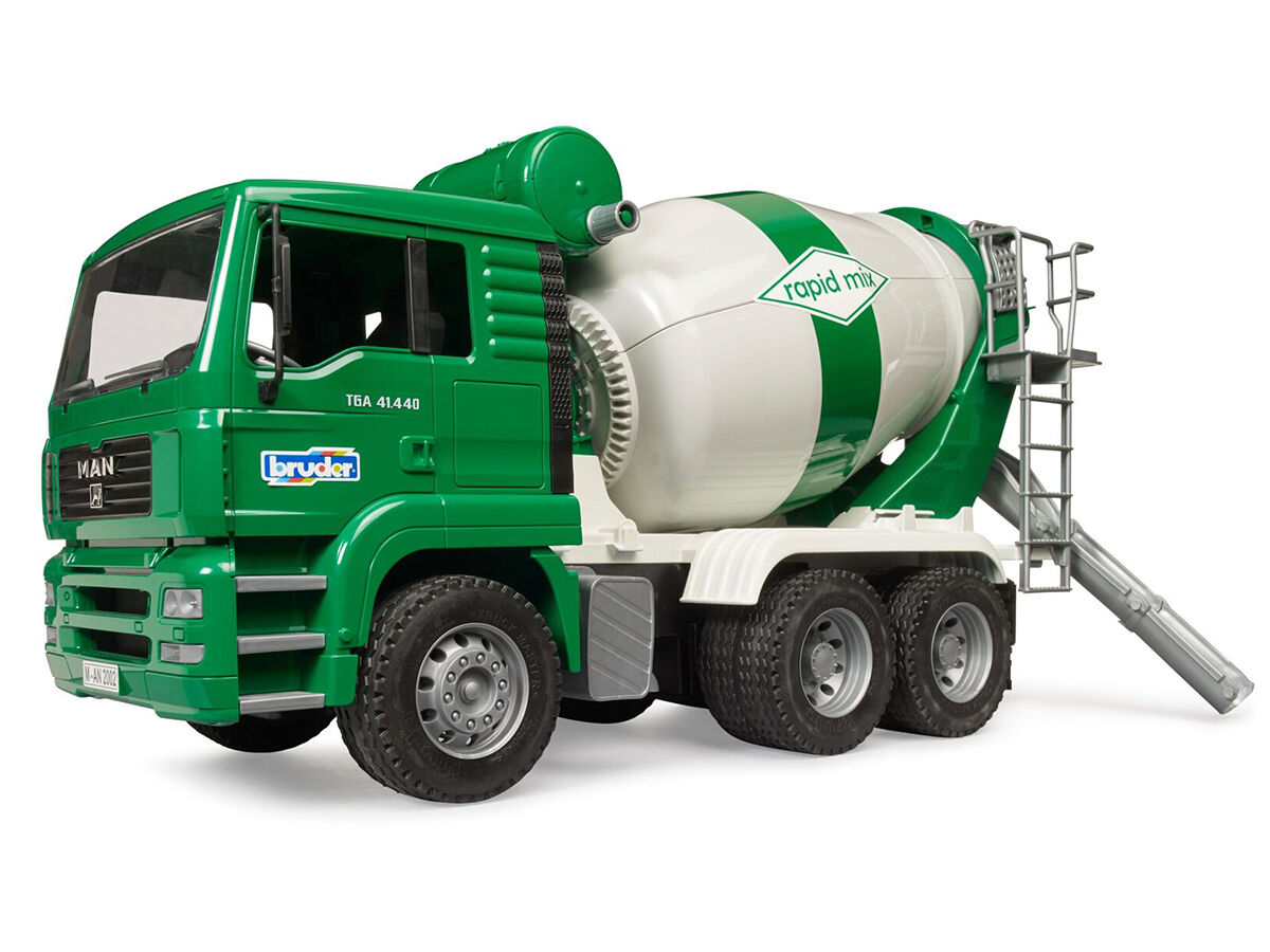 Tento domíchávač vychází jako novinka osvědčeného modelu MAN TGA. Jeho kabina se dá naklápět a umožňuje tak lepší výhled pro manipulaci. Díky otevíracím dveřím mohou do vozu nastupovat dělníci v podobě figurek Bruder. Buben míchačky je otočný a lze v něm míchat potřebný materiál. Změnou směru otáčení je možné z bubnu míchaný materiál vypustit. Šnekový dopravník na vnitřní straně bubnu dopravuje náklad do výsypného žlabu v zadní části.