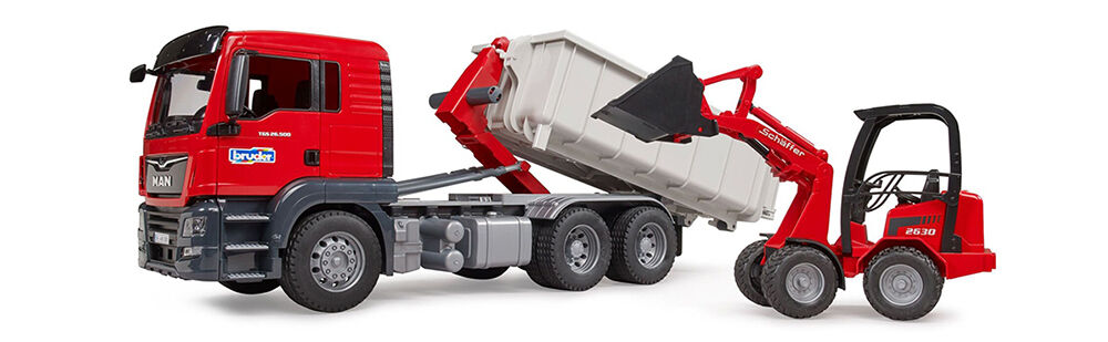 Bruder MAN TGS s kontejnerem a nakladačem Schäffer 1:16