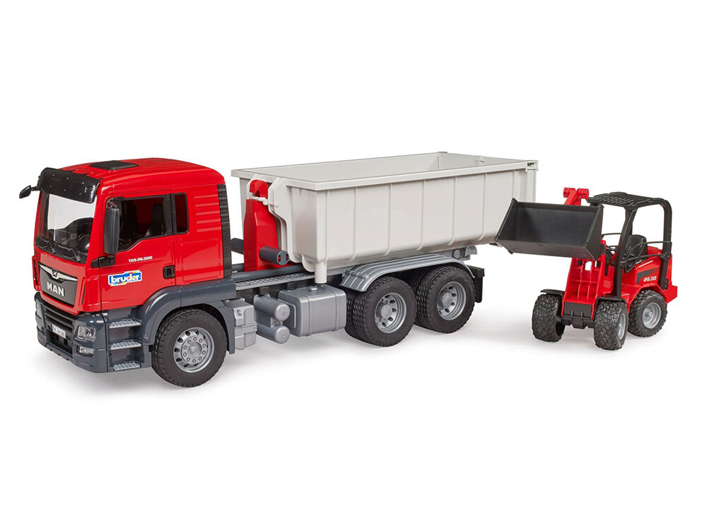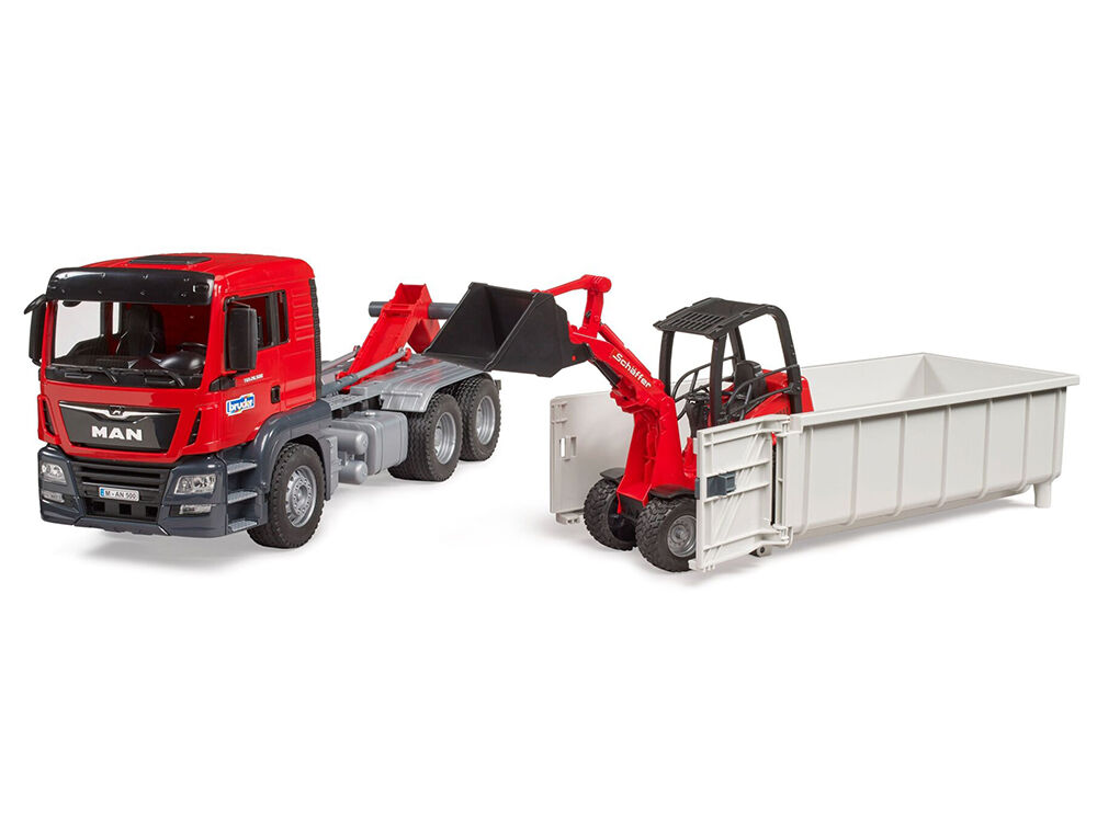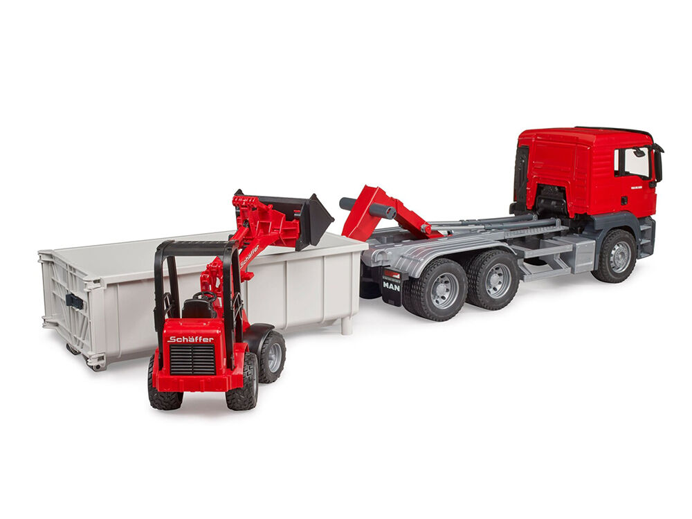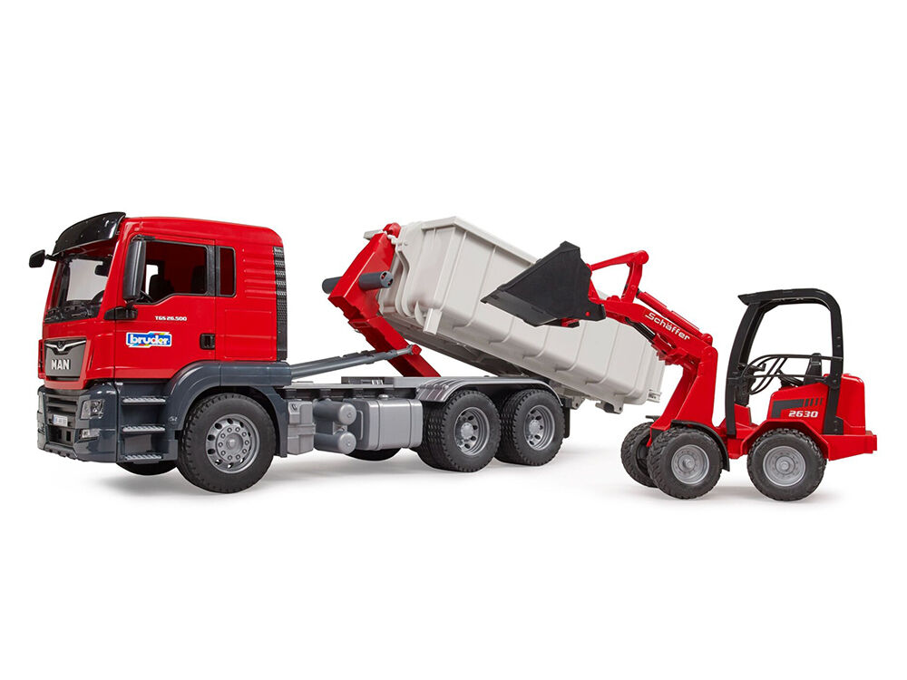 Bruder MAN TGS s kontejnerem a nakladačem Schäffer 1:16