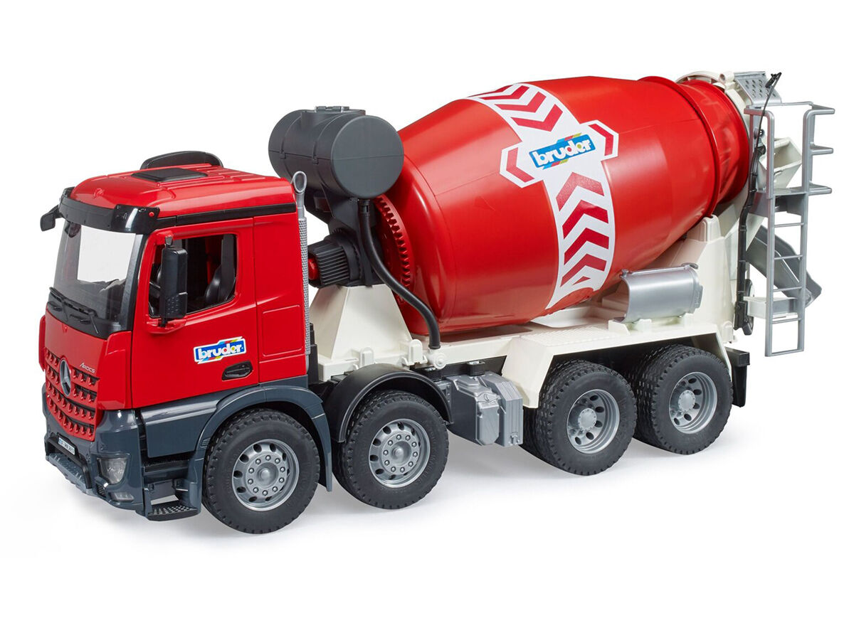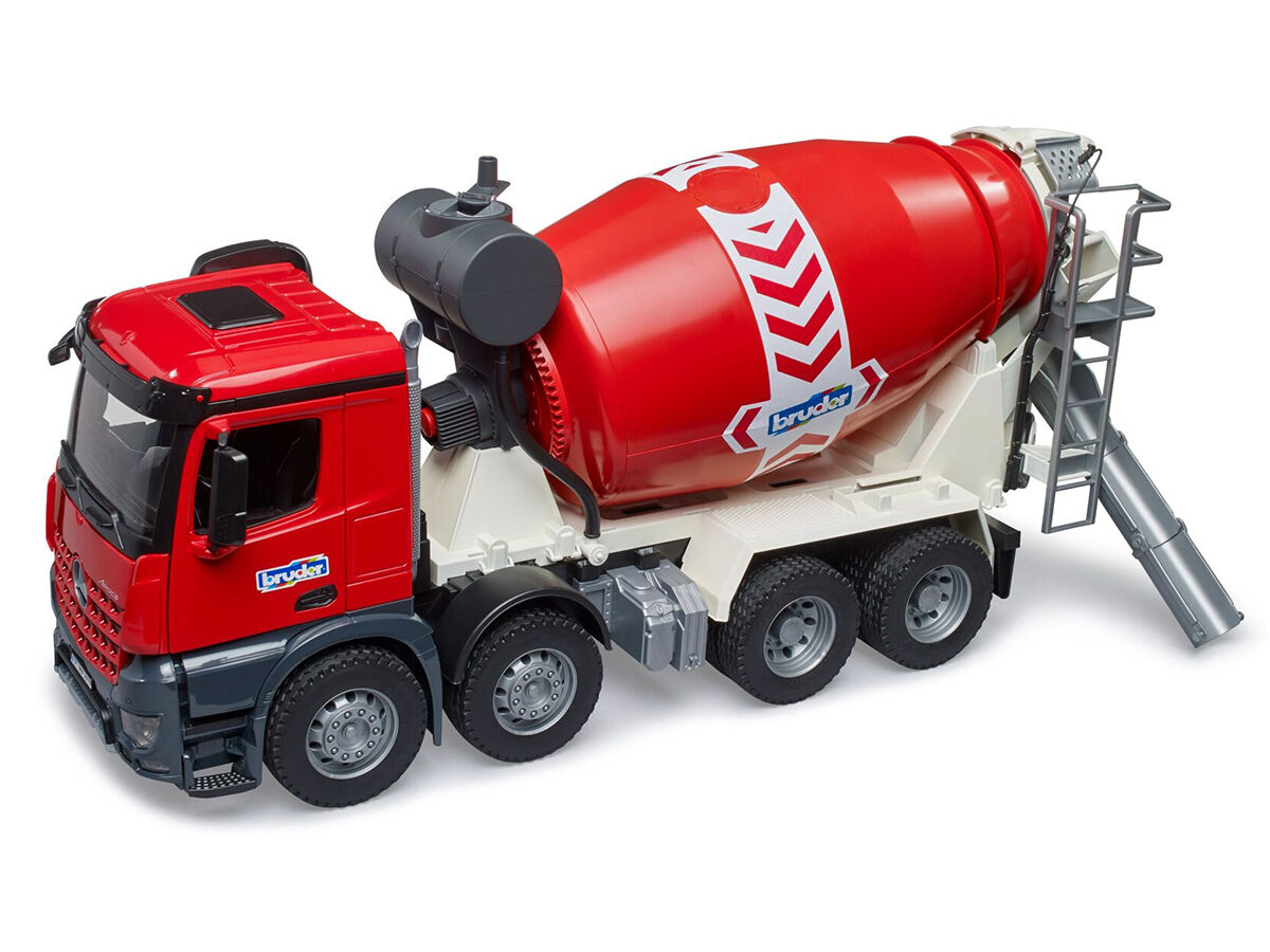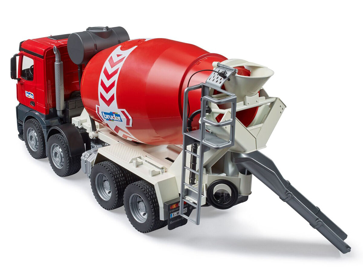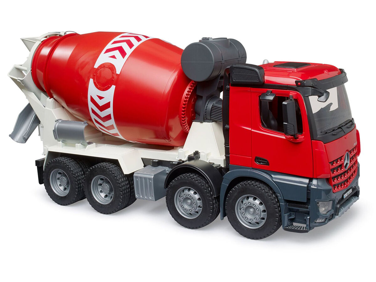 Výkon, odolnost a účinnost jsou často rozhodujícími prvky pracovního dne na silnicích a staveništích. Proto byl nový Mercedes-Benz Arocs vyvinut speciálně pro tyto potřeby. Těmto technickým vlastnostem byl přizpůsoben i design. Například přední část masky chladiče je navržena v typickém vzhledu vozu Arocs, který odráží jeho obrovskou sílu. Díky otevíracím dveřím mohou do vozu nastupovat dělníci v podobě figurek Bruder. Buben míchačky je otočný a lze v něm míchat potřebný materiál. Změnou směru otáčení je možné z bubnu míchaný materiál vypustit. Šnekový dopravník na vnitřní straně bubnu dopravuje náklad do výsypného žlabu v zadní části.