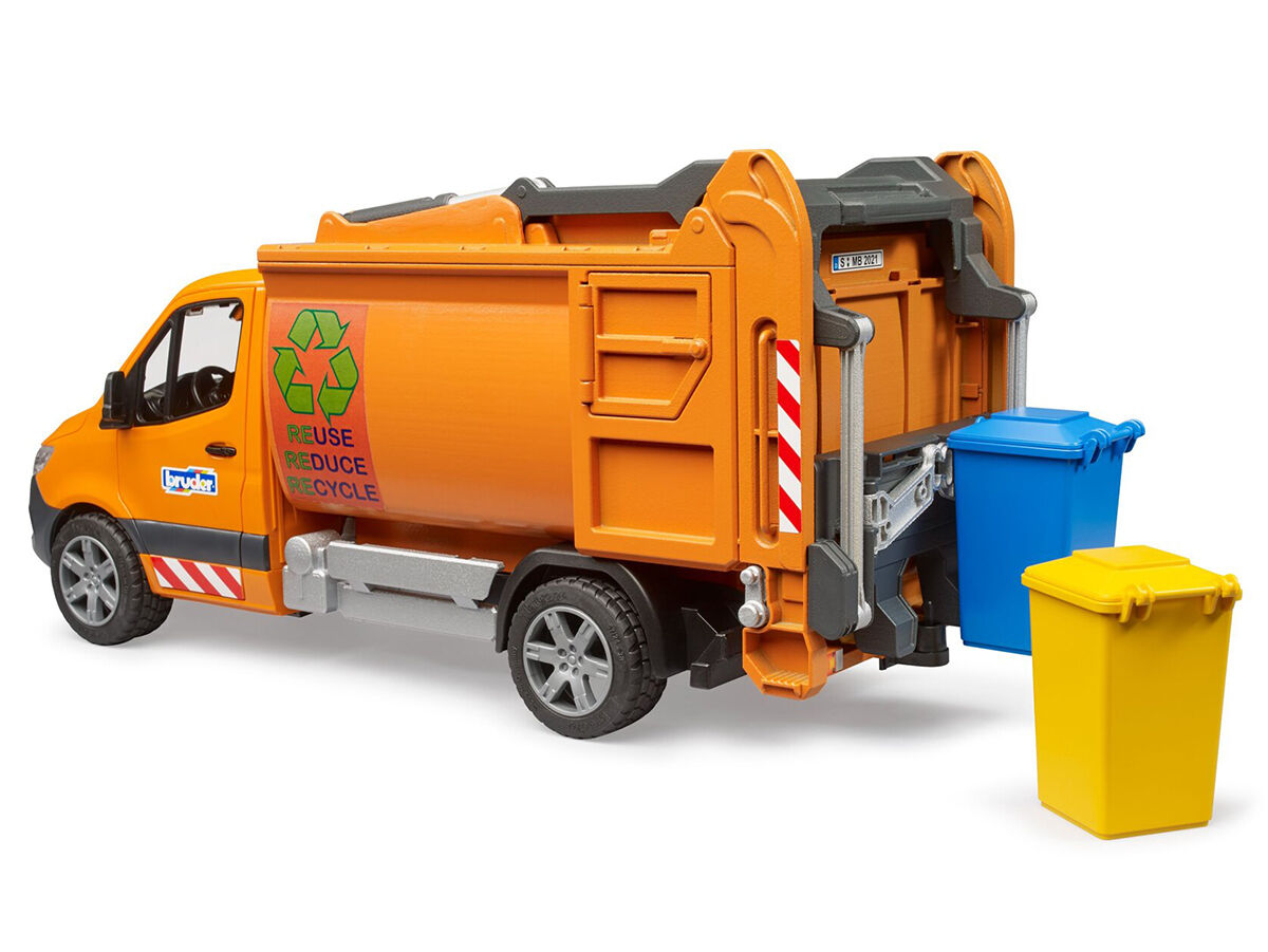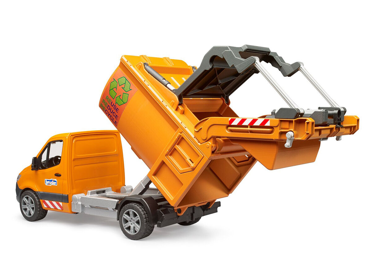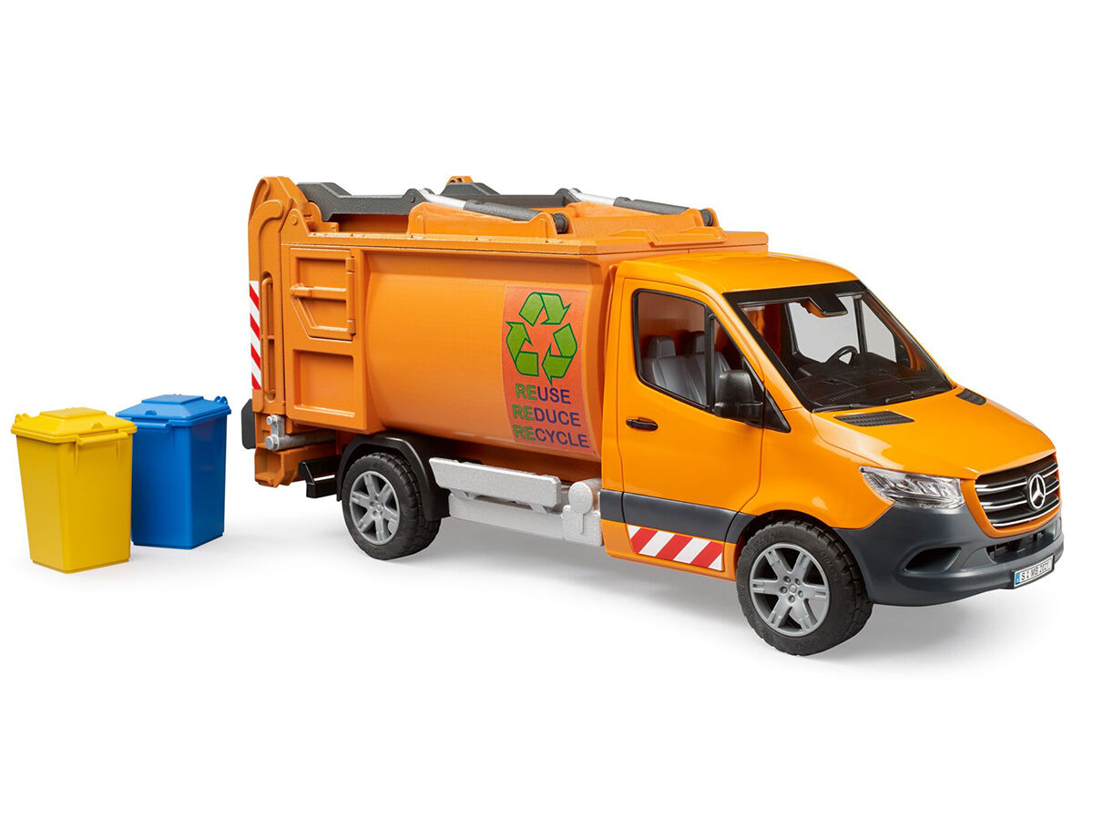 Efektivní a spolehlivý, tak Mercedes Benz popisuje nový Sprinter, který nyní přichází, aby rozšířil škálu popelářských vozů značky Bruder. Je spousta míst, kam nezajede velké popelářské auto, ale s touto novinkou, už nezůstane žádné místo bez vyvezení odpadků. Stejně jako skutečný popelářský vůz, poradí si i tento model městského popelářského vozu s malými popelnicemi či kontejnery nebo nádoby na odpadky.