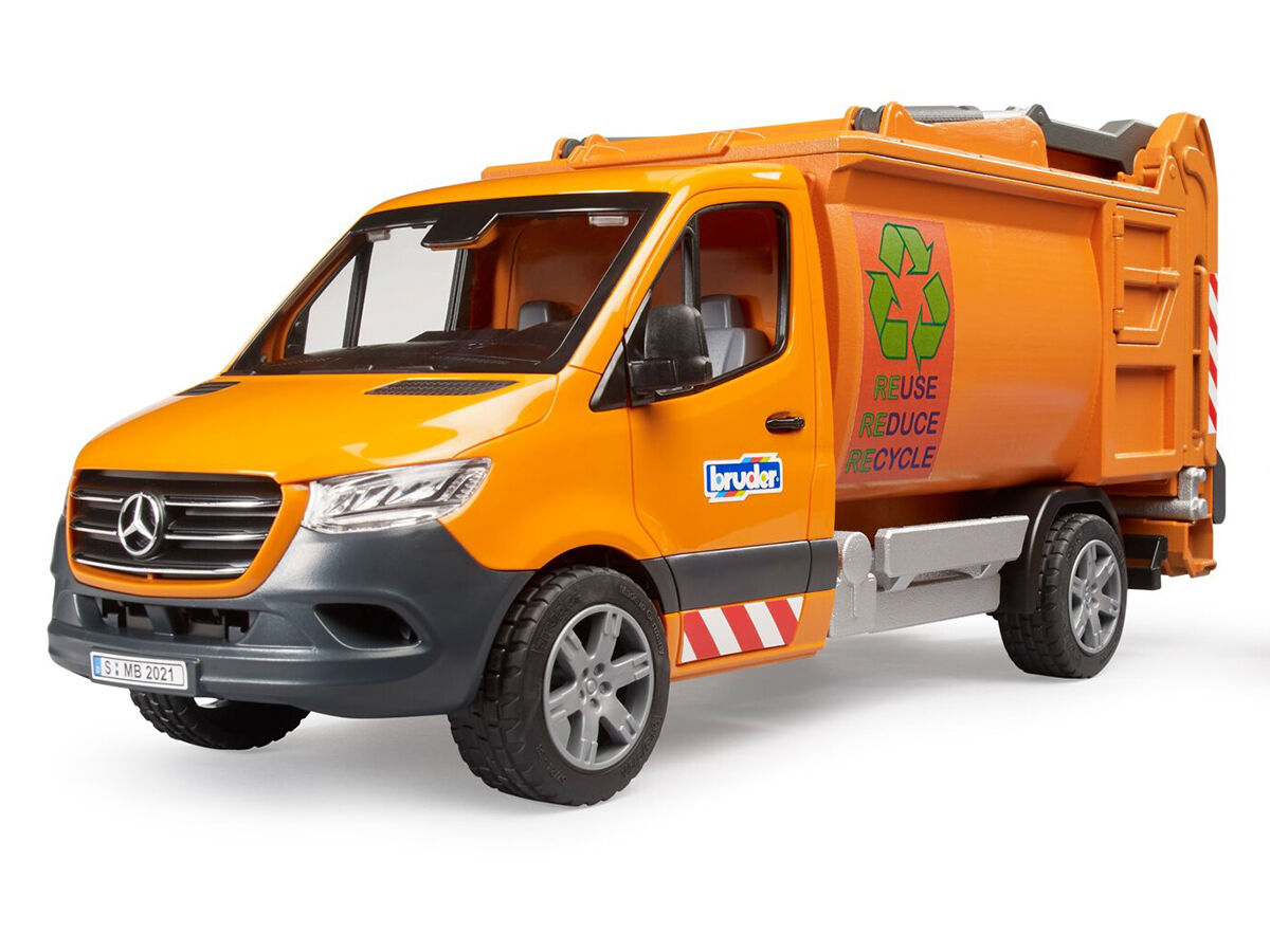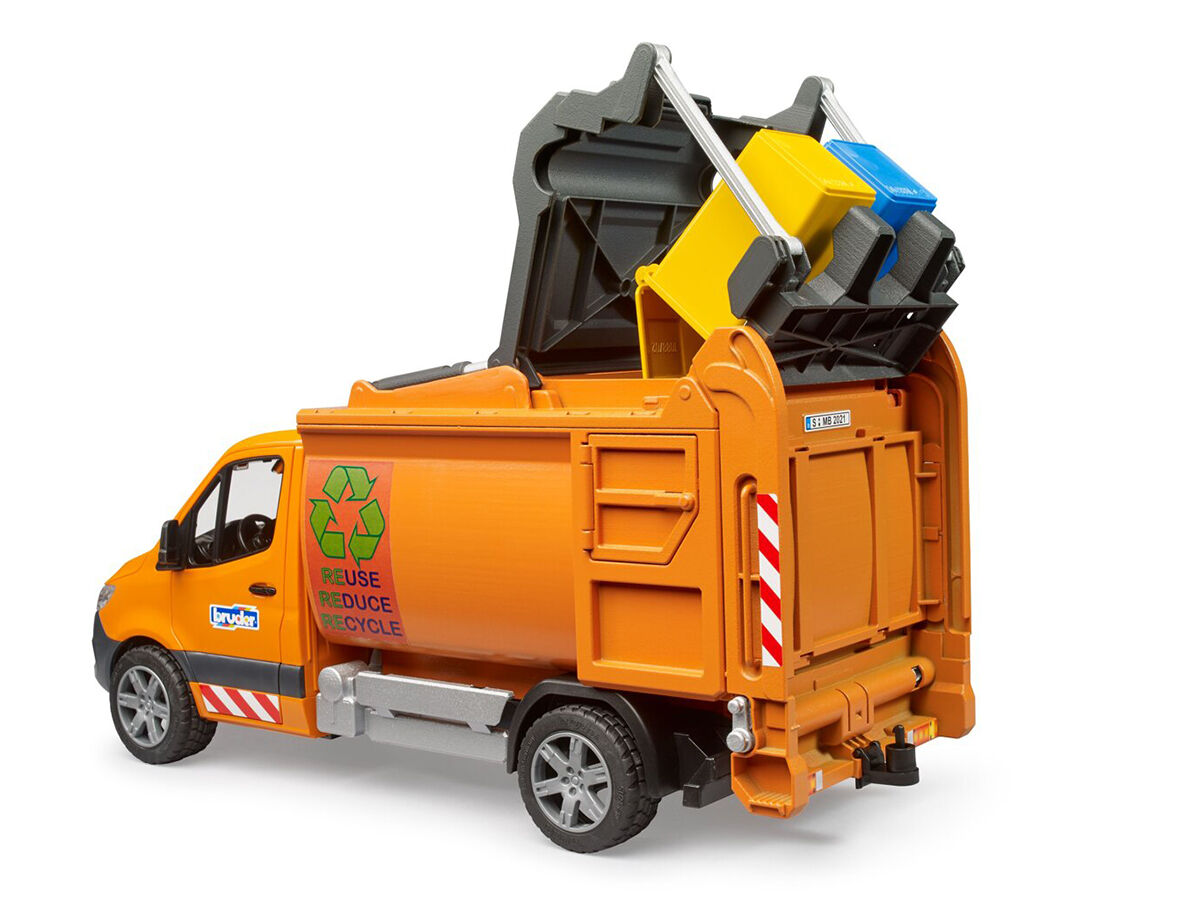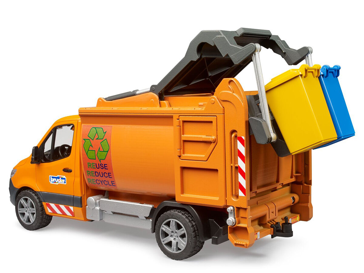 Efektivní a spolehlivý, tak Mercedes Benz popisuje nový Sprinter, který nyní přichází, aby rozšířil škálu popelářských vozů značky Bruder. Je spousta míst, kam nezajede velké popelářské auto, ale s touto novinkou, už nezůstane žádné místo bez vyvezení odpadků. Stejně jako skutečný popelářský vůz, poradí si i tento model městského popelářského vozu s malými popelnicemi či kontejnery nebo nádoby na odpadky.