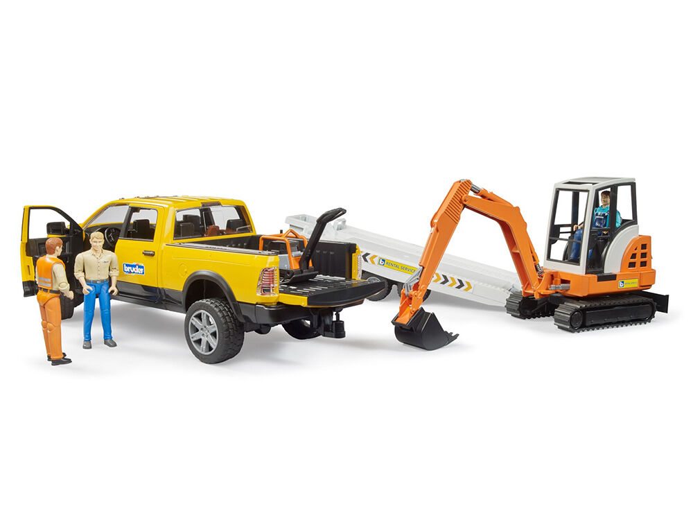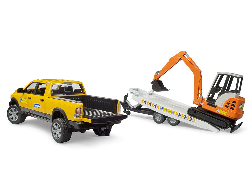 Model auta RAM s přívěsem a minirypadlem je věrnou kopií skutečného vozu RAM, který je robustní a vyznačuje se velkou tažnou silou. Součástí sady je přívěs, který umožňuje bezpečný transport minirypadla. Plošina je naklápěcí, což usnadňuje nakládání a vykládání, a oj je vybavena stabilizační podpěrou pro bezpečné parkování. Kabina minirypadla se otáčí o 360°, rypadlo má odnímatelnou lžící a nastavitelnou radlici. Díky gumovým pásům se zvládne pohybovat i v náročném terénu. Model má odpružené nápravy, díky nim zvládne i jízdu v terénu a prodloužený nástavec volantu usnadňuje jeho ovládání. Kabina je dostatečně velká až pro 4 figurky bworld a všechny dveře jsou otevíratelné. Na zadní korbě se dá přepravovat menší náklad a zadní dveře se dají otevřít pro jeho snadné naložení. Vyrobeno precizně z kvalitních materiálů. Vytvořte realistické staveniště za použití dalších modelů Bruder, jako je figurka stavebního dělníka (BR60020), minibagr (BR2456) nebo dopravní značky (BR62007). Vyrobeno precizně z kvalitních materiálů.