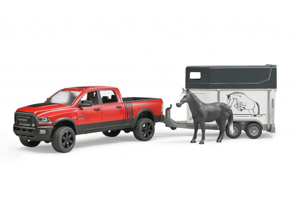 Balení obsahuje: terénní auto RAM, přepravník na koně a figurku koně.