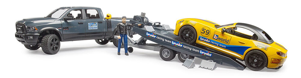 Bruder RAM Terénní auto se sportovním vozem a figurkou 1:16