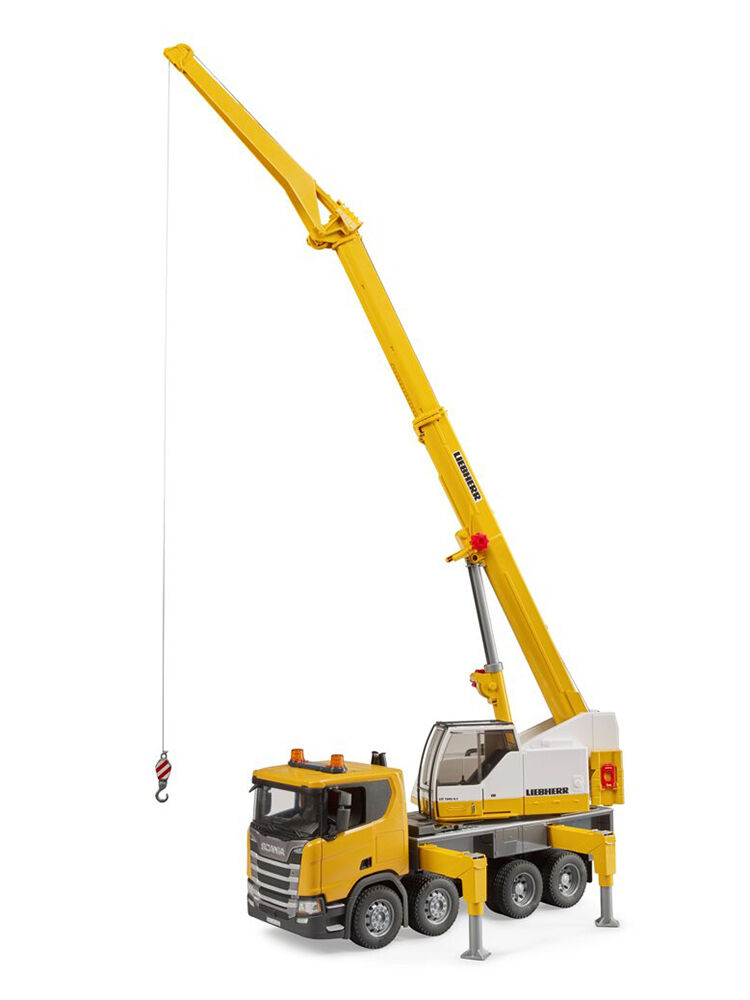 Nákladní automobil má k dispozici jeřáb jenž je při plně vysunutém a vztyčeném rameni vysoký 1,30 m. Stabilita při těchto rozměrech je samozřejmě nutností - tudíž je opatřen individuálně otočnými a nastavitelnými nohami sloužícími jako podpora. Pro ještě větší stabilitu lze použít připojené protizávaží jako u originálního jeřábu. Lanový naviják s aretačním zařízením a ochranou proti přetížení umožňuje snadnou manipulaci s hákem jeřábu při zvedání a spouštění i větších dílů. Stejně jako originál má kabina jeřábníka ochranný rám okna a posuvné, otvíratelné dveře. Světelný a zvukový modul je součástí dodávky a ještě více zvyšuje herní hodnotu tohoto propracovaného nákladního auta.