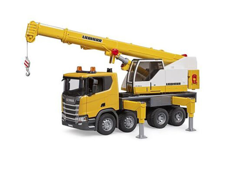 Nákladní automobil má k dispozici jeřáb jenž je při plně vysunutém a vztyčeném rameni vysoký 1,30 m. Stabilita při těchto rozměrech je samozřejmě nutností - tudíž je opatřen individuálně otočnými a nastavitelnými nohami sloužícími jako podpora. Pro ještě větší stabilitu lze použít připojené protizávaží jako u originálního jeřábu. Lanový naviják s aretačním zařízením a ochranou proti přetížení umožňuje snadnou manipulaci s hákem jeřábu při zvedání a spouštění i větších dílů. Stejně jako originál má kabina jeřábníka ochranný rám okna a posuvné, otvíratelné dveře. Světelný a zvukový modul je součástí dodávky a ještě více zvyšuje herní hodnotu tohoto propracovaného nákladního auta.