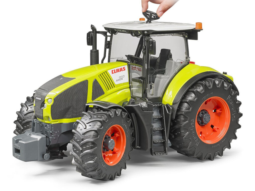 Tento model je věrnou kopií nejnovějšího traktoru Claas. Prosklená a otevíratelná kabina je připravena pro posazení řidiče. Pohled na velký motor umožňuje otevíratelná kapota. Odpružená přední náprava ve spojení s prodlouženým volantem dodá vašemu dítku možnost zdolat jakýkoliv terén. Výškově nastavitelné tažné zařízení umožňuje připojit jakýkoliv přívěs série Bruder. Vyrobeno v Německu, z kvalitních materiálů.