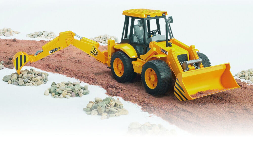 Nakladač JCB 4CX je oboustranný nakladač, vybavený čelní lžící i zadním bagrem. Traktor má plně funkční přední nakladač. Sedadlo řidiče je otočné o 360° a volant pohyblivý. K bezpečnějšímu upevnění pozice slouží výsuvné opěrné nohy. Zadní nakladač se pohybuje vertikálně i horizontálně pomocí kloubu jako u skutečeného stroje. Nechybí ani měkké profilované pneumatiky. Vyrobeno v Německu, z kvalitních materiálů.