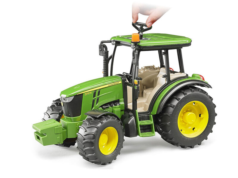 Krásně zpracovaný model traktoru John Deere 5115M se může pyšnit povedeným designem, kvalitním provedením i zábavnými funkcemi. Tento jedinečný model je vyveden v měřítku 1:16, jako materiál byl použit ABS plast. Najdete na něm držák pro připojení čelního nakladače, závěsné zařízení či odnímatelné přední závaží. Ovládání je řešeno prodlouženým volantem, který snadno instalujete prostřednictvím posuvné střechy. Pro ještě lepší zábavu lze k traktoru připojit další příslušenství značky Bruder včetně figurek z edice Bworld. Vyrobeno v Německu.
