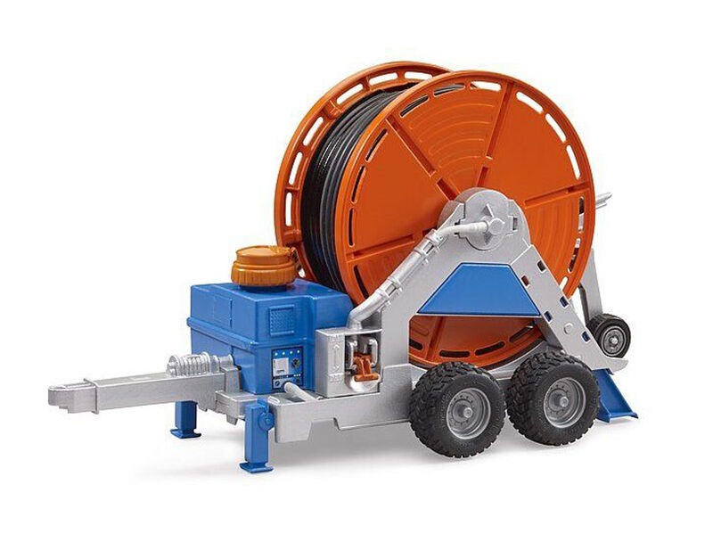 Ať už se jedná o sportovní hřiště, školky, pole, sady nebo jiné velké plochy, všude tam, kde je potřeba rovnoměrná a stálá dodávka vody, mají zavlažovače své místo. Tento důležitý stroj pro úspěšné zemědělství je nyní k dispozici. Pomocí navijáku ovládaného kličkou mohou mladí farmáři navinout na zavlačovací vůz 1,8 m dlouhou hadici, na kterou je připojen postřikovač. Součástí je i nádrž s funkčním čerpadlem. Díky systému čerpadla lze vodu rozvádět snadno a realisticky.