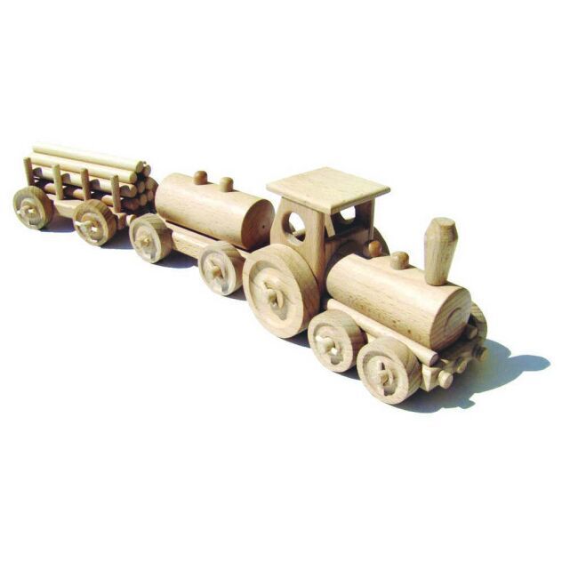 Dřevěný model vláčku je vyroben z vysoce kvalitního bukového dřeva. Jeho povrch je pouze voskován a leštěn, není nijak chemicky upravován či barven, aby byl zachován přírodní vzhled. Dřevěnému vláčku se točí kolečka a nemá žádné ostré hrany. Je vhodné i na pískoviště.