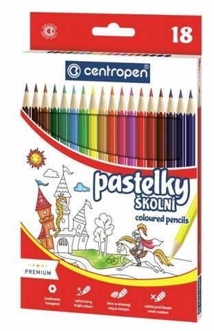 Kvalitní školní pastelky od renomovaného českého výrobce psacích potřeb. Vhodné pro běžné kreslení. Šestihranné dřevěné tělo s pigmentovaným jádrem v jasných barvách. Pastelky se dobře ořezávají, výborně kryjí, výsledná stopa je sytá a plnobarevná. Baleno v papírové krabičce.
