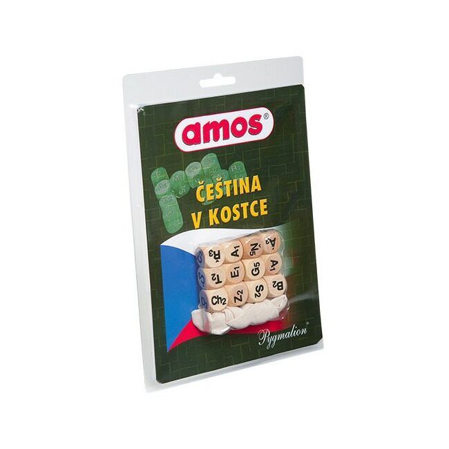 Čeština v kostce z řady jazykových her AMOS pobaví i poučí. S přáteli nebo v rodinném kruhu zábavnou formou prověří znalost českého jazyka. Rozvíjí kombinační schopnosti a slovní zásobu. Tato varianta oblíbené jazykové hry z řady AMOS nabízí větší kostky s lépe čitelnými znaky.