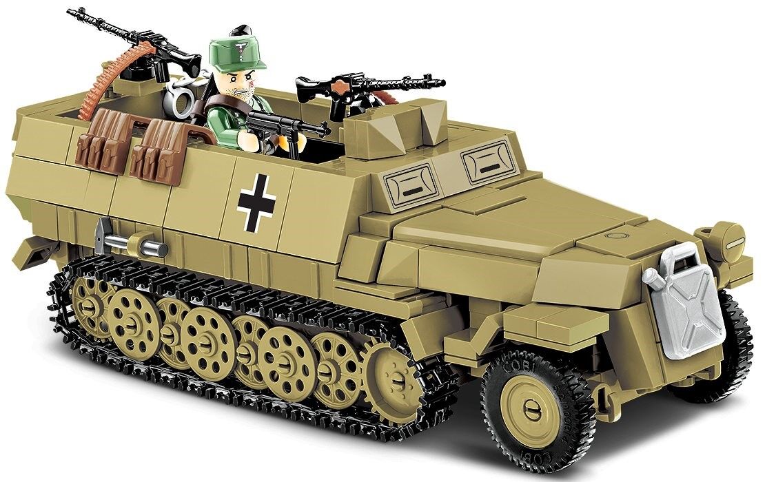 Má řadu pohyblivých prvků, jako jsou otevírací zadní pancéřované dveře, přední a zadní závěs s kulometem MG 34 a funkční pásový podvozek. Balení obsahuje 463 dílů a figurku německého vojáka vyzbrojeného samopalem a pancéřovou pěstí. Stavebnice je vyrobena pod oficiální licencí PC hry Company of Heroes 3, společnosti Relic.