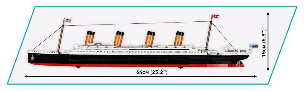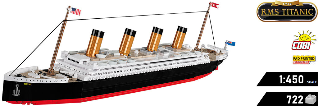 Stavebnice modelu slavného britského zaoceánského parníku TITANIC v měřítku 1:450. Nová série lodí Titanic přináší realističtější zpracování detailů a přesnější poměr rozměrů modelu. Model COBI-1929 má zploštělý kýl osazený malými kolečky a loď je více vhodná pro hraní, zatímco model COBI-1928 má kompletní oblý kýl a je vhodný k dokonalému vystavení v přiloženém stojánku s popiskem.