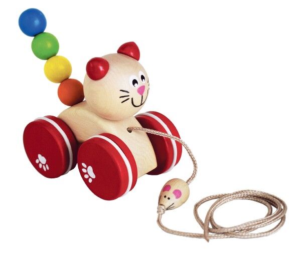 Začalo vaše děťátko již s prvními krůčky? Každé dítko má z chůze obrovskou radost a pro ještě větší zábavu mu pořiďte dřevěnou tahací hračku, kterou jsme měli snad všichni, když jsme byli malí. Tato tahací kočka má navíc na provázku přivázanou myšku. Rozměry balení 13 x 11 x 8 cm. Vhodné pro děti od 1 roku.