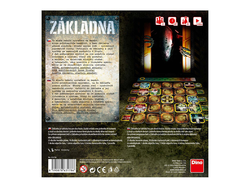 Nechte se strhnout do této originální české autorské hry a přijměte výzvu Základny. Zábava, napětí a taktika Vás čeká na každém kroku. Připravte se na adrenalinový zážitek a staňte se zachráncem všech zapomenutých vzorků! Zapomeňte na bezpečné hraní a vstupte do dobrodružného bludiště chodeb a laboratoří opuštěné Základny. Vyzkoušejte, jak rychle a takticky dokážete přesunout své tři kameny na druhý konec Základny a zachránit je před explozí. Každý Váš tah a rozhodnutí hraje klíčovou roli, a to i v souboji s časem. Čas je totiž Vaším největším nepřítelem, neboť Základna je tikající bomba, která se blíží svému zničení!