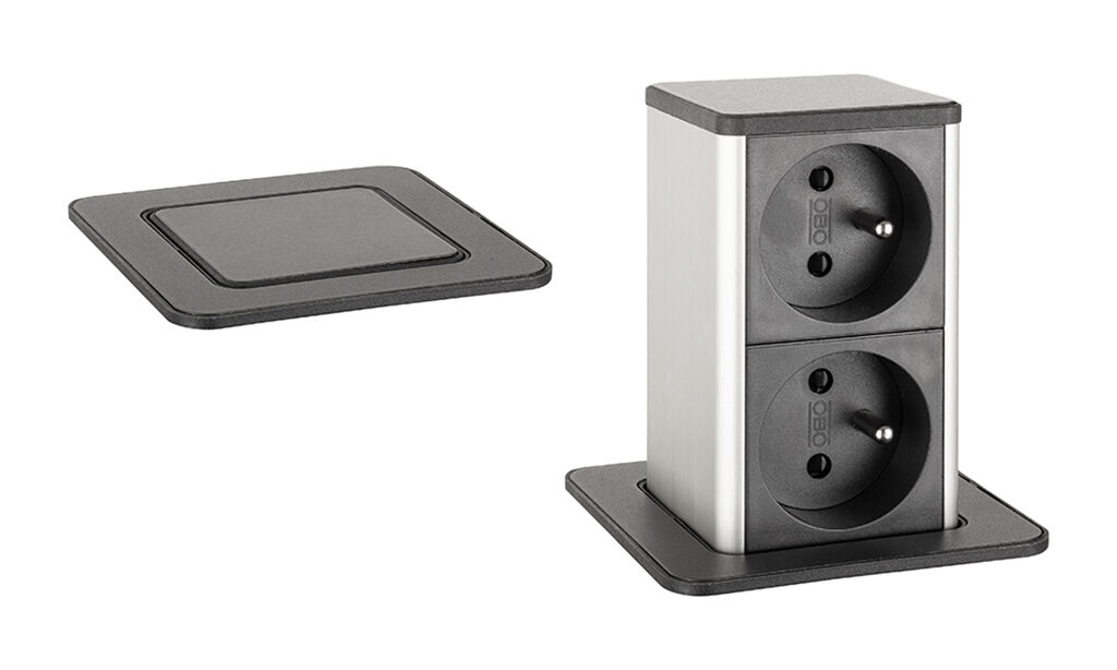 Tip pro montáž: Díky kompaktní hloubce je tato zásuvka vhodná i pro desky, pod kterými se nacházejí zásuvkové kontejnery (vždy si však ověřte prostorovou nenáročnost pod pracovní deskou).