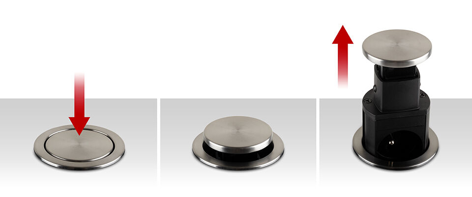 - Způsob otevírání: Výsuvný (vytahovací) mechanismus, který umožňuje zásuvku skrýt pod úroveň pracovní desky, když se nepoužívá.