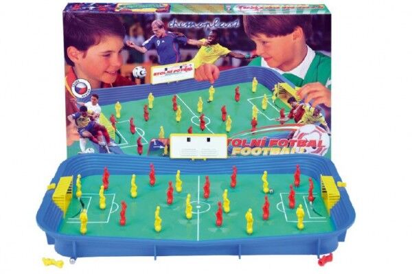 Klasická hra oblíbená již řadu let, u které je zaručeno stejné napětí jako při mistrovském zápase ve fotbale. Soupeřit na fotbalovém turnaji mohou děti i dospělí. Hra je vyrobena z kvalitního plastu v ČR. Hráči jsou upevnění na pružině a jejím natažením – ohnutím hráče příslušným směrem uvedete balón (ocelovou kuličku) do pohybu. Ovládat lze také brankáře a nad tribunou je umístěn ukazatel skóre. Češi, do toho!