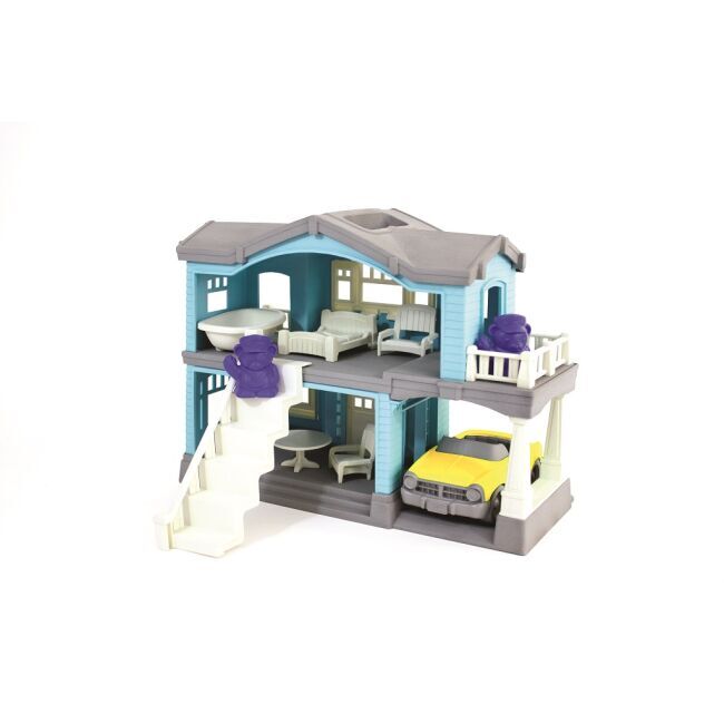 Domek má otevřenou zadní stranu a balkony, děti si jej mohou vybavit dle vlastní představy. Podpoří je v kooperativní a interaktivní hře. Dílky se do domu jednoduše vejdou, mohou tam tedy zůstat i mimo hru a ušetří vám tak úložný prostor. Hračka je netoxická, neobsahuje BPA, PVC, ftaláty, ani vnější nátěr. Vyrobeno ze 100% recyklovaného plastu.