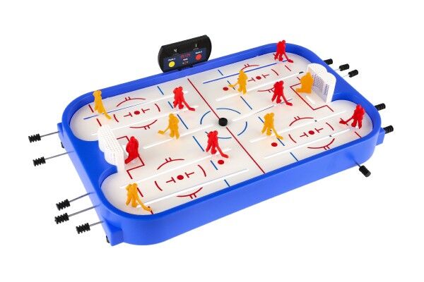 Tento velký plastový stolní hokej je skvělá společenská hra. Základem hokeje je robustní plastové kluziště, které vydrží i tvrdé údery. Kovová táhla. Hokej je společenská hra pro malé i velké. Staň se jedním z profi hráčů a užij si hokej přímo ve vašem obýváku nebo na zahradě spolu s dalšími kamarády.