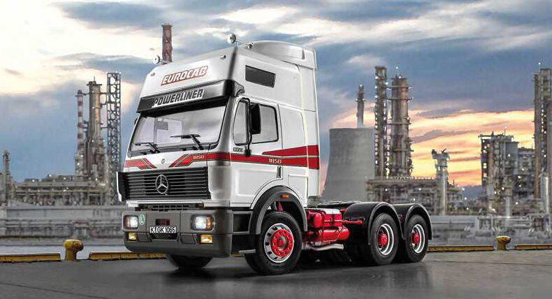 Plastikový model Italeri 3924 – truck Mercedes-Benz SK Eurocab 6x4 ke slepení. Měřítko 1:24, délka 270 mm, stavební obtížnost 4.