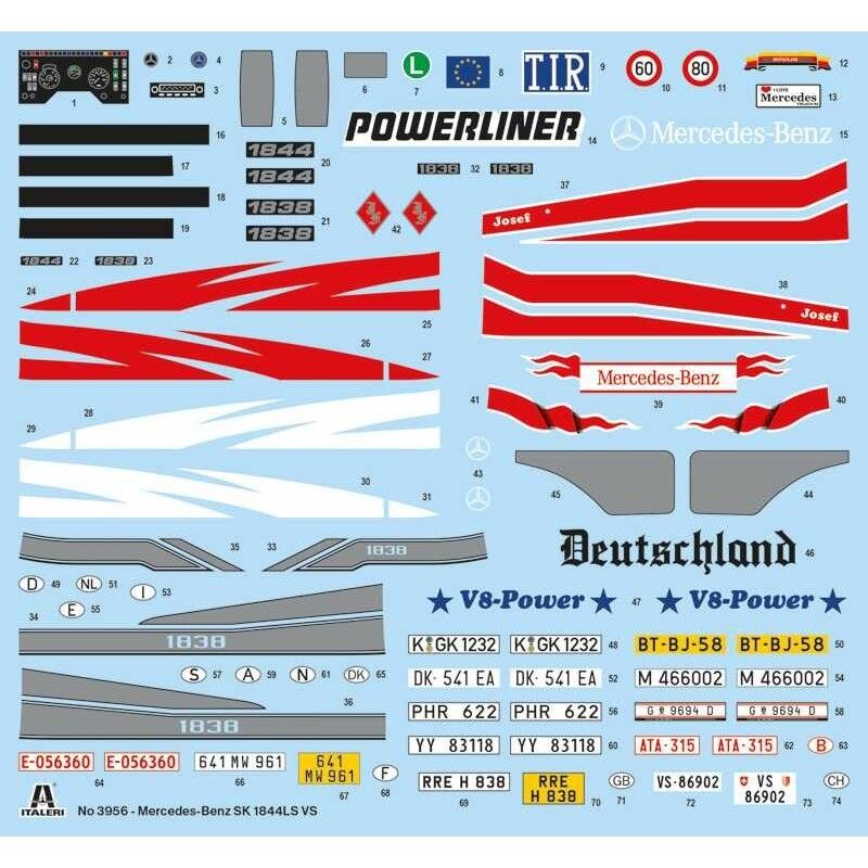 Plastikový model Italeri 3924 – truck Mercedes-Benz SK Eurocab 6x4 ke slepení. Měřítko 1:24, délka 270 mm, stavební obtížnost 4.