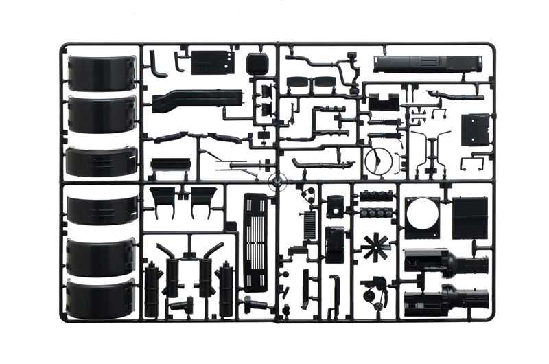 Plastiková stavebnice těžkého nákladního automobilu Mercedes-Benz 2238 6x4 v měřítku 1:24 ke slepení. Délka modelu 280 mm, obtížnost 4.