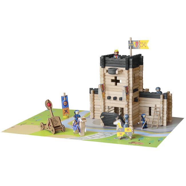 Zažijte velká dobrodružství s těmito chrabrými rytíři! Postavte si svůj vlastní hrad, nainstaluje padací most, vězení, strážní stezku, vlajky a sestavte katapult. Stačí nasednout na koně a dobývání může být zahájeno! Stavebnice Jeujura Constructions mají dlouhou tradici a patří mezi klasické francouzské hračky. Nabízí série tématicky věnované chatám, domkům a farmám, ale také divokému západu a středověku. Dají se mezi sebou volně kombinovat a k řadě z nich je také nabízeno příslušenství, figurky a vozidla. Jsou vyráběny ve Francii, z masivního bukového a borovicového dřeva francouzského původu. Dílky jsou ošetřeny výhradně za použití barev a laků na bázi vody. Každá sada je balena v praktickém lepenkovém kufříku potištěném rostlinnými inkousty a součástí balení je snadno pochopitelný návod.