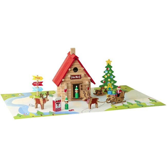 Objevte kouzlo Vánoc! Nahlédněte do Santovy chaty a kochejte se krásou severního pólu! Spolu s chaloupkou a Santou v sadě také naleznete malé skřítky, sáně se soby, poštovní schránku, ukazatel a vánoční stromek s dárky. Stavebnice Jeujura Constructions mají dlouhou tradici a patří mezi klasické francouzské hračky. Nabízí série tématicky věnované chatám, domkům a farmám, ale také divokému západu a středověku. Dají se mezi sebou volně kombinovat a k řadě z nich je také nabízeno příslušenství, figurky a vozidla. Jsou vyráběny ve Francii, z masivního bukového a borovicového dřeva francouzského původu. Dílky jsou ošetřeny výhradně za použití barev a laků na bázi vody. Každá sada je balena v praktickém lepenkovém kufříku potištěném rostlinnými inkousty a součástí balení je snadno pochopitelný návod.