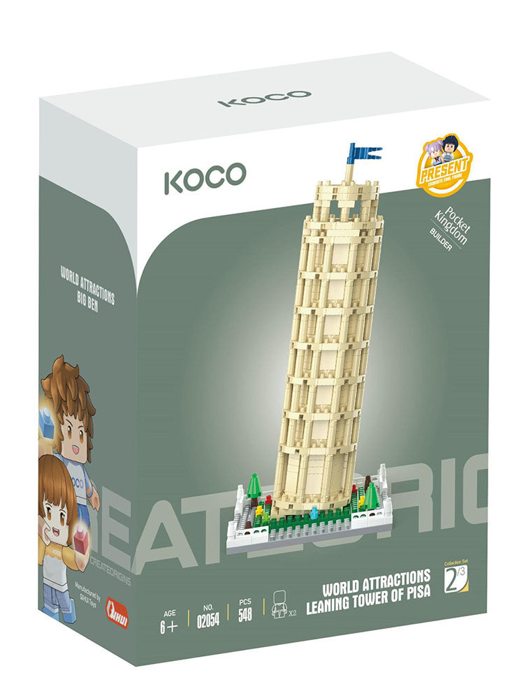 Postavte si slavnou Šikmou věž v Pise, jednu z nejznámějších památek Itálie, přímo u vás doma. Stavebnice KOCO nabízí detailní miniaturu unikátní stavby, která svou šikmou konstrukcí fascinuje celý svět. Z 548 plastových dílků sestavíte model, jenž bude ozdobou vaší sbírky a originálním kouskem na výstavku.