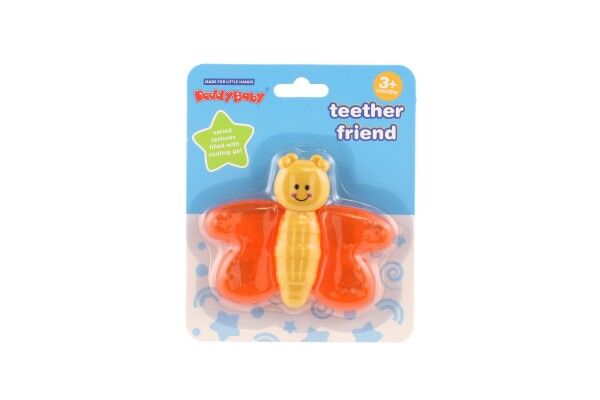 Chladící kousátko díky svému tvaru a materiálu pomáhá tišit bolest a jemně masírovat dásně miminek v období růstu prvních zoubků. Kousátko má plastové a silikonové části.