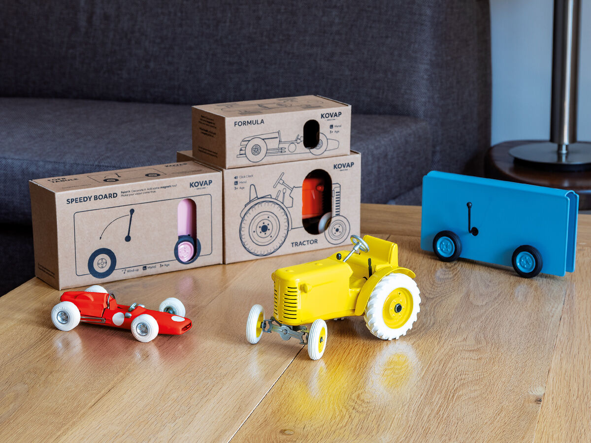 Hračky jsou ekologicky nezávadné, šetrné k přírodě a pyšní se mimo jiné certifikátem BEZPEČNÉ HRAČKY. Plechové produkty značky KOVAP jsou ideálním dárkem pro děti i dospělé a patří k populárním tradičním suvenýrům z České republiky.